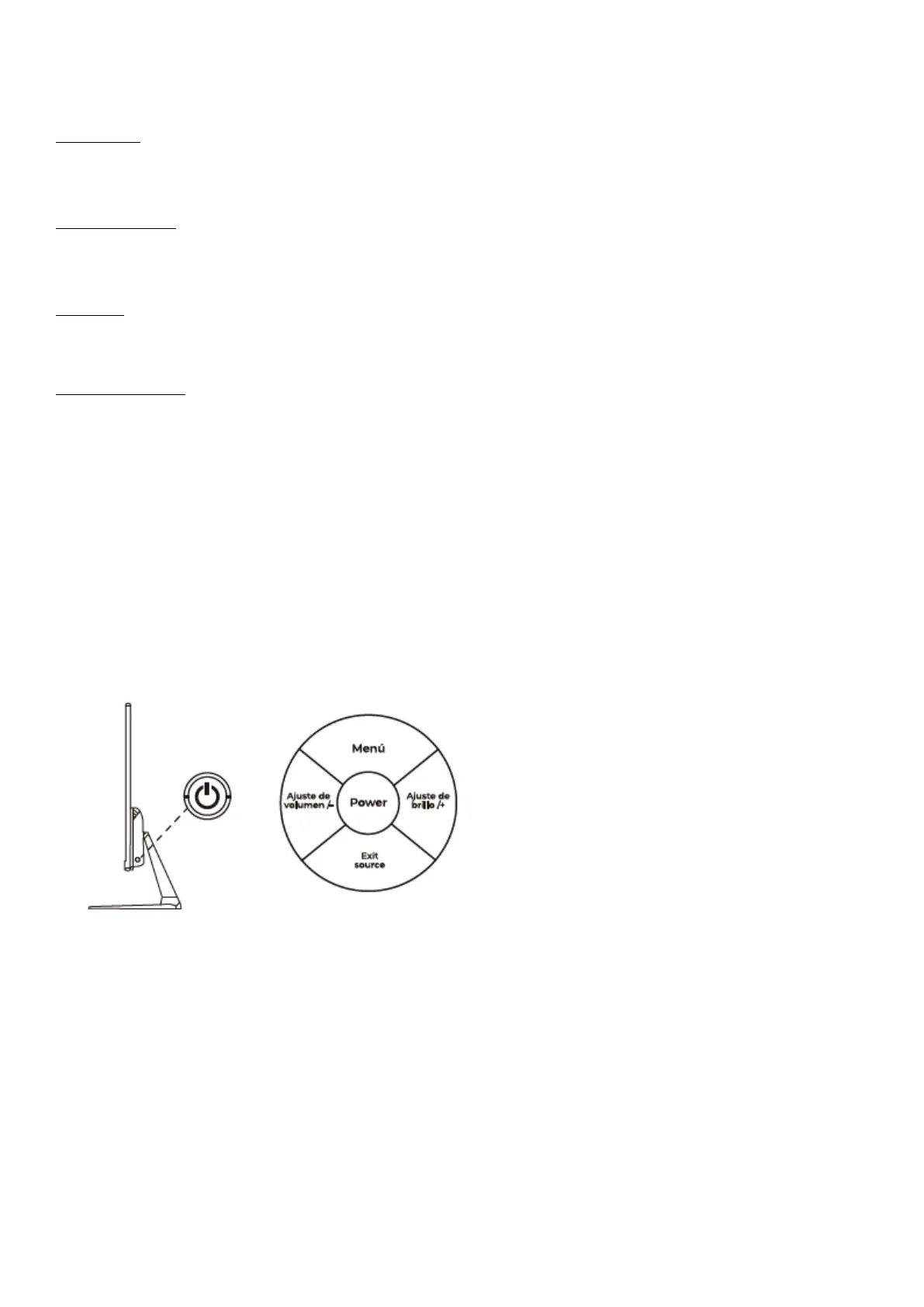 Botão do meio (Power): Se quiser ligar o monitor, pressione o botão liga/desliga, se quiser desligar o monitor, pressione-o