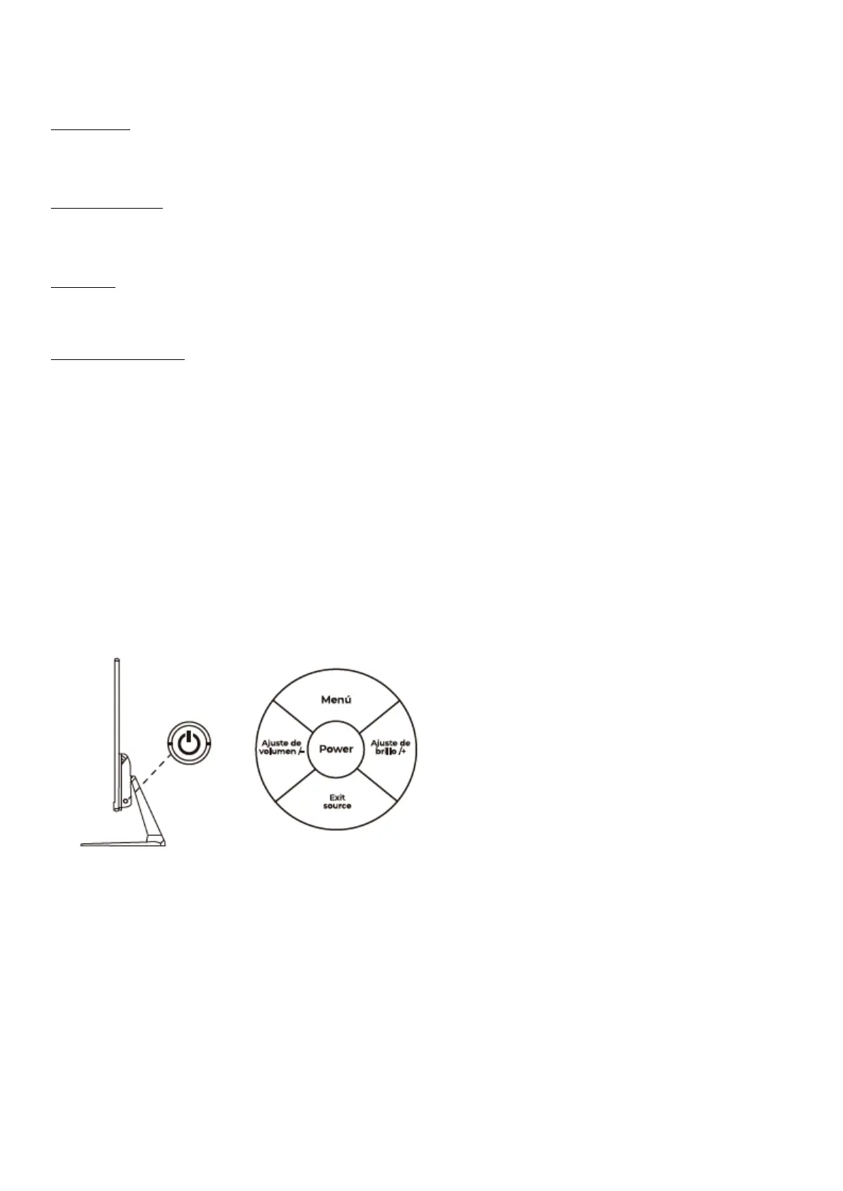 Mittlere Taste (Power): Wenn Sie den Monitor einschalten möchten, drücken Sie die Ein-/Aus-Taste, wenn Sie den Monitor