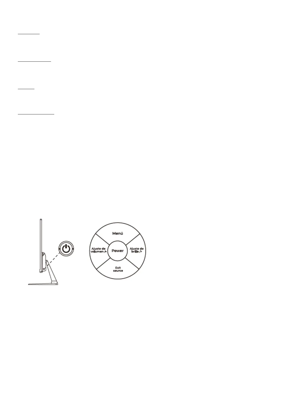 Middle button (Power): If you want to turn on the monitor, press the on/off button, if you want to turn off the monitor, press it
