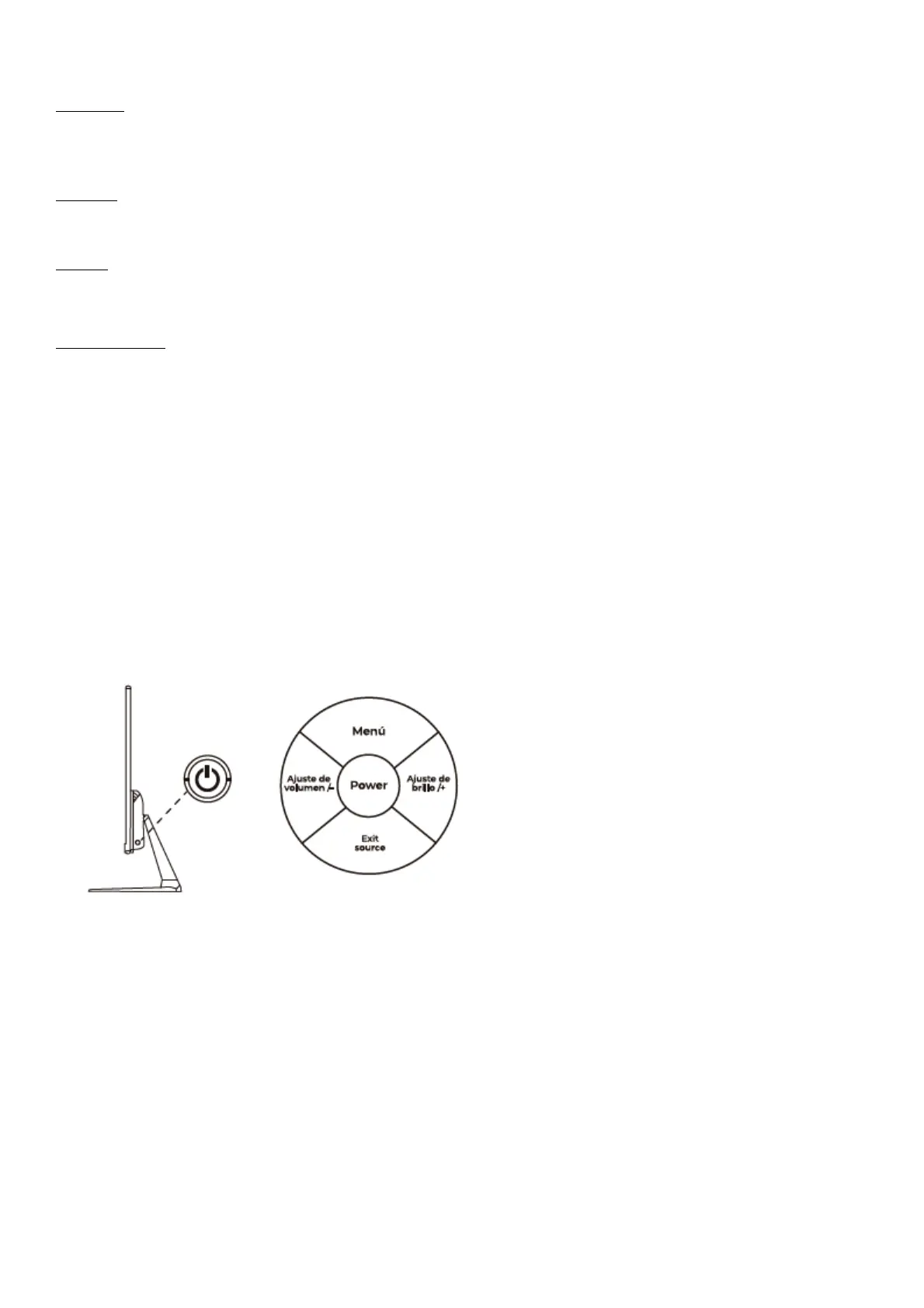 Power button: If you want to turn the monitor on press the on/off button, if you want to turn the monitor off press it again.