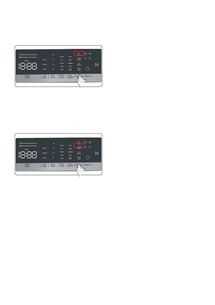 NOTE: When you want to select the prewash auxiliary function, if the Pre Wash LED