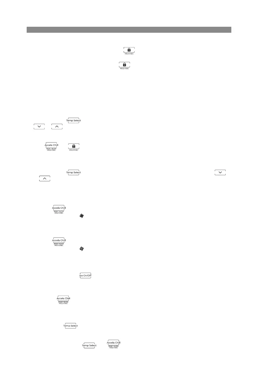 • Press the button to start the Accela chill function. The refrigerator room is set at 34°F