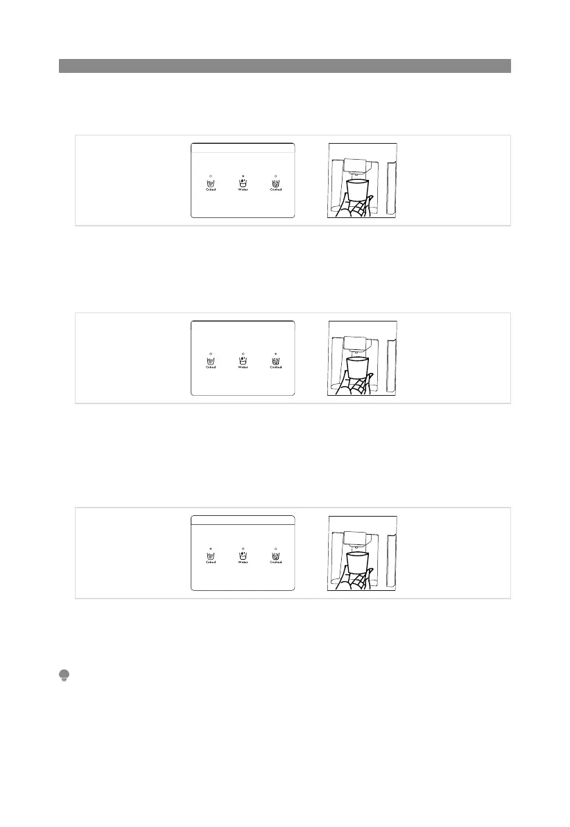 • Selecting the Water icon indicates the water will be dispensed when the dispenser pad is activated.