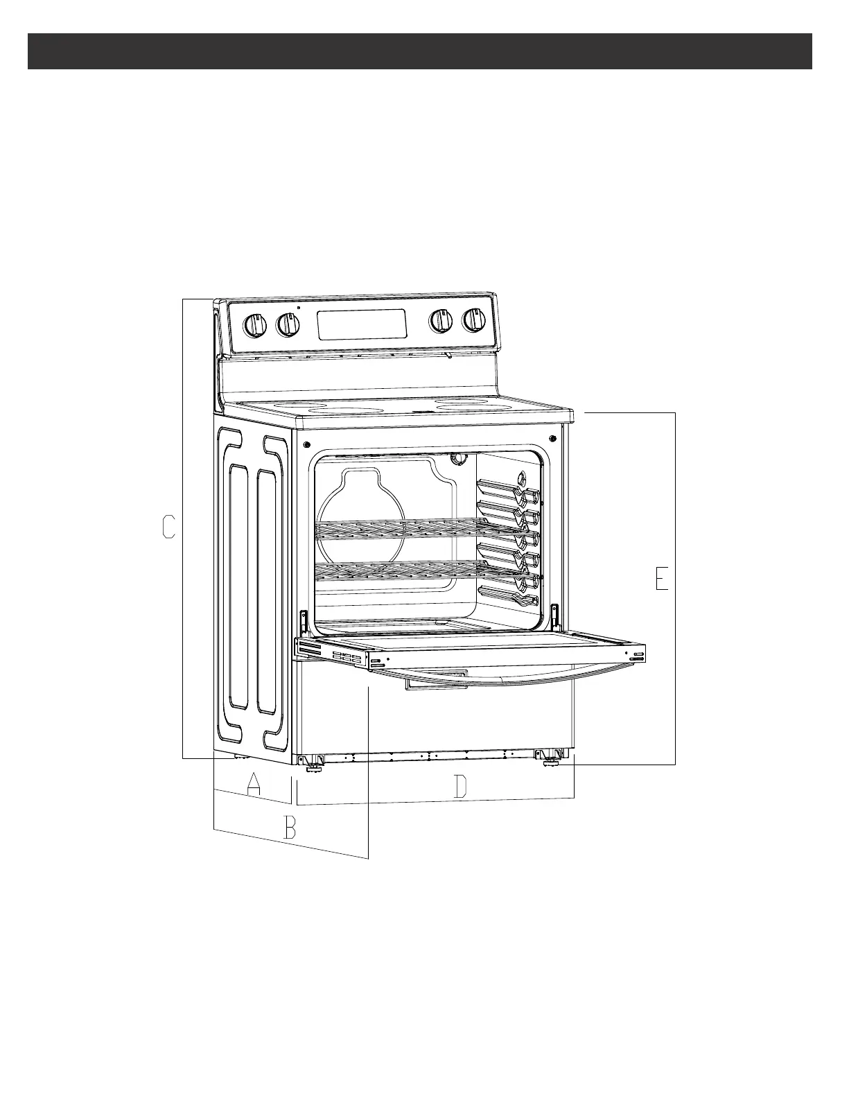 E. 35.9” (91.2 cm) cooktop height (max.) with leveling legs