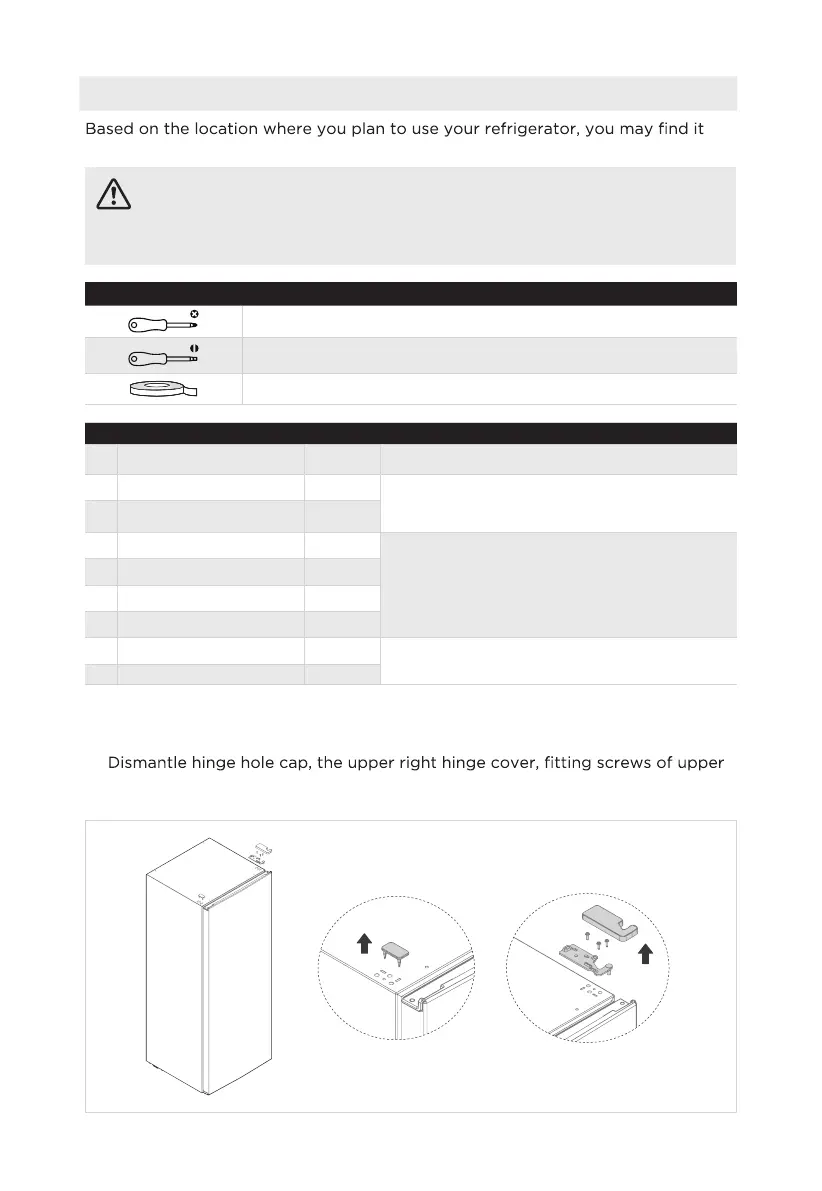 right hinge, and remove the upper right hinge, please keep the door vertical in
