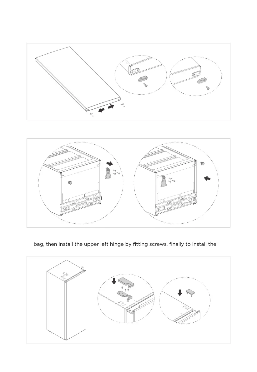 gasket, take out the spare upper left hinge and hinge cover from accessory