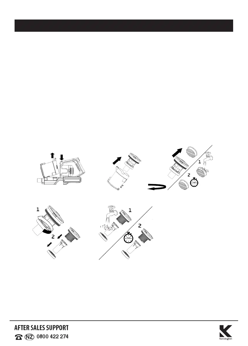 disassembly the cyclone filter (Fig 16), wash with running water, and