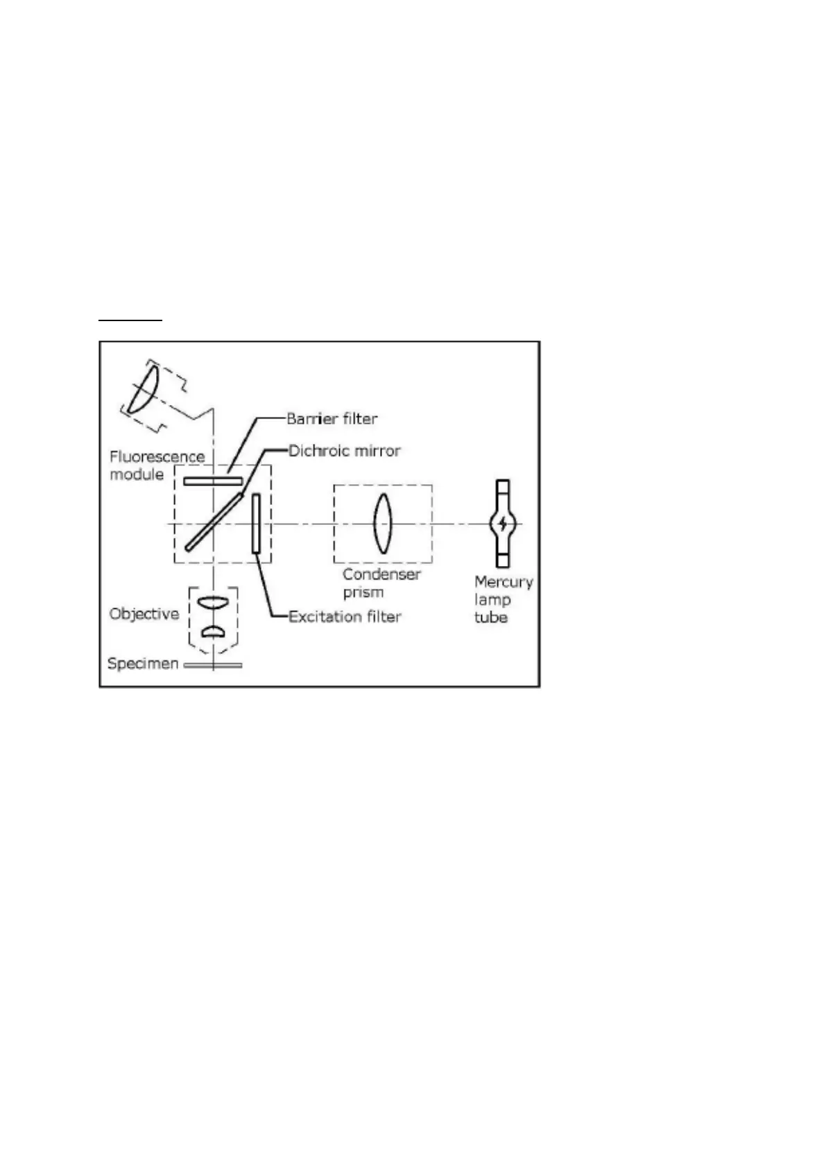 remaining part of the excitation light from advancing towards the eyepieces. The barrier