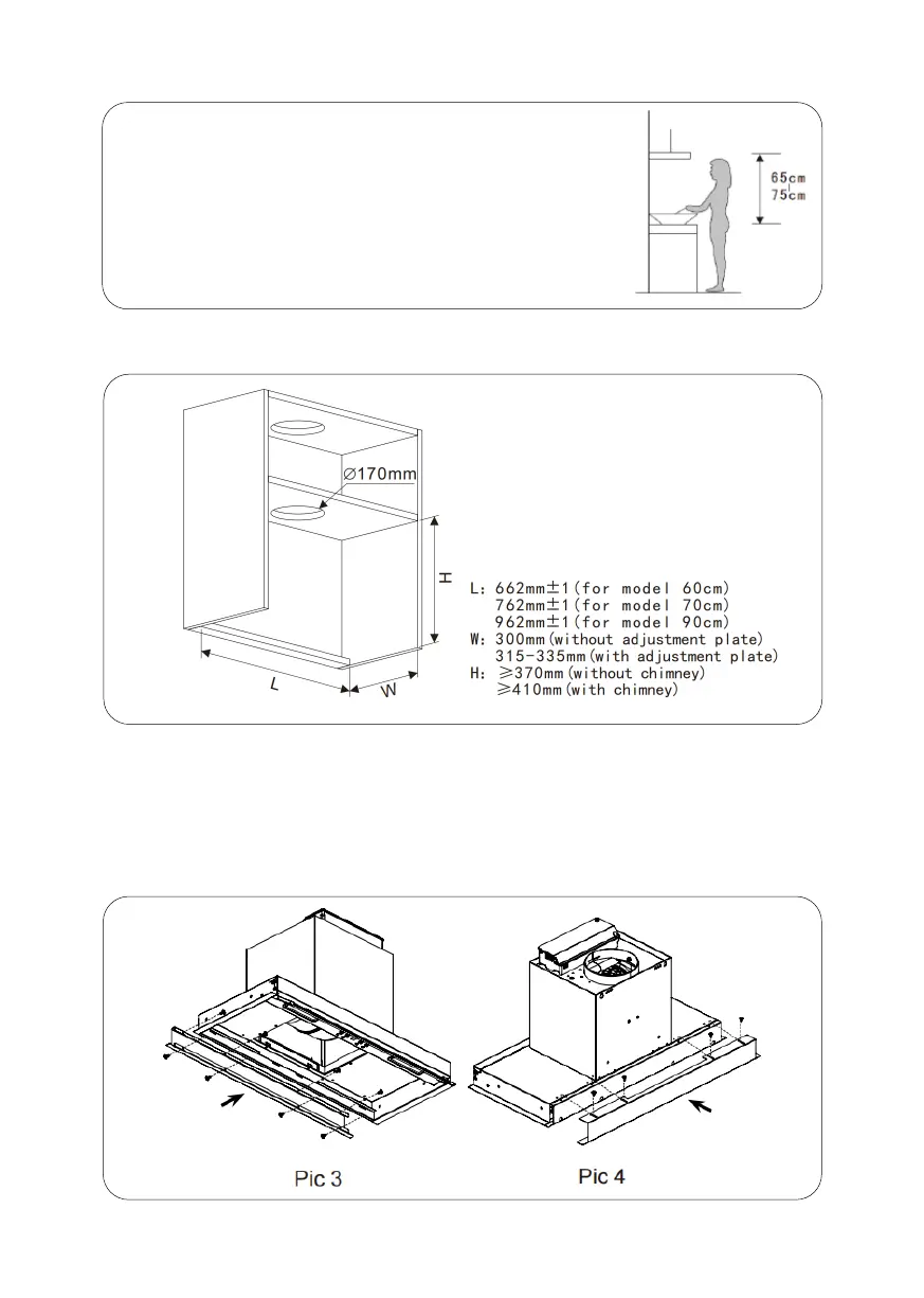 2. The cooker hood should be placed at a distance of 65~75cm above