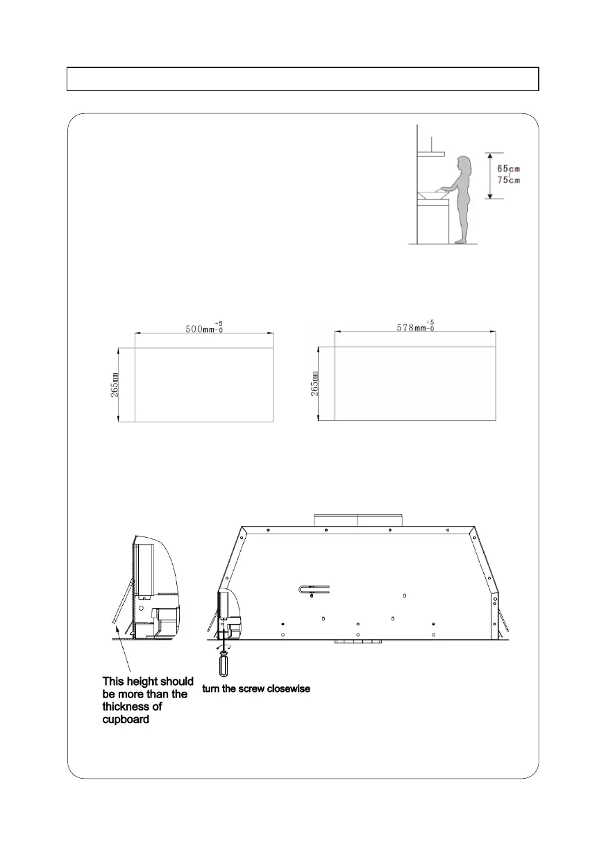 1. Drill a hole in the cupboard, with hole wide 500*265 (mm) for model 52cm.See pic1.Make