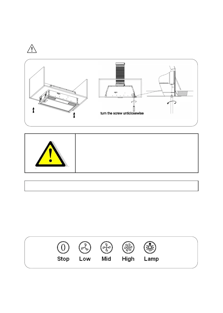 anticlockwise separately until the panel of hood fit to the cupboard horizontally and make sure the hood is