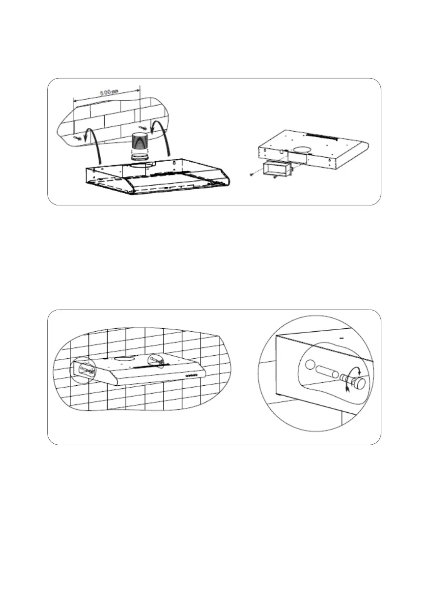 (3) Decide the location of the holes for fixing the cooker hood. To install onto the wall, drill 2 holes of