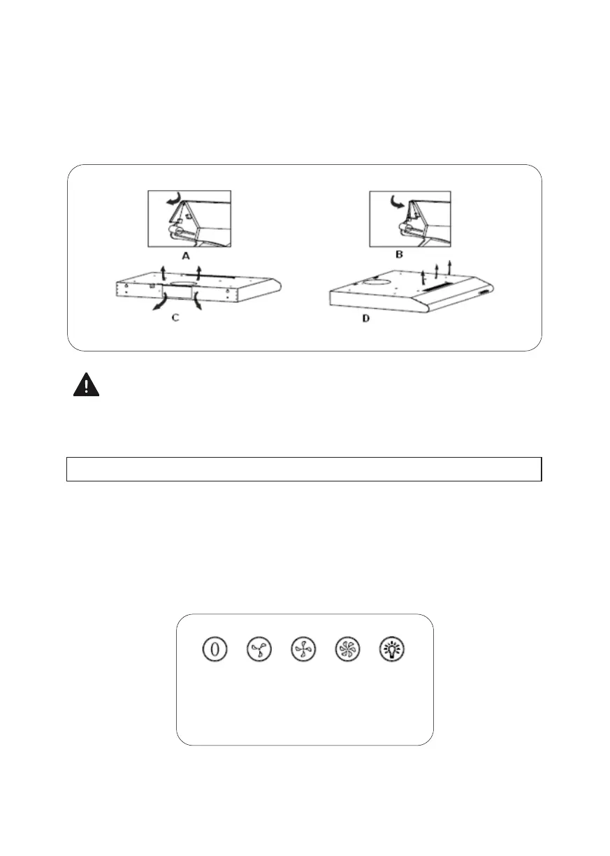 вихідного отвору, увімкніть витяжку, тоді повітря буде виводитися через внутрішній вихідний отвір.