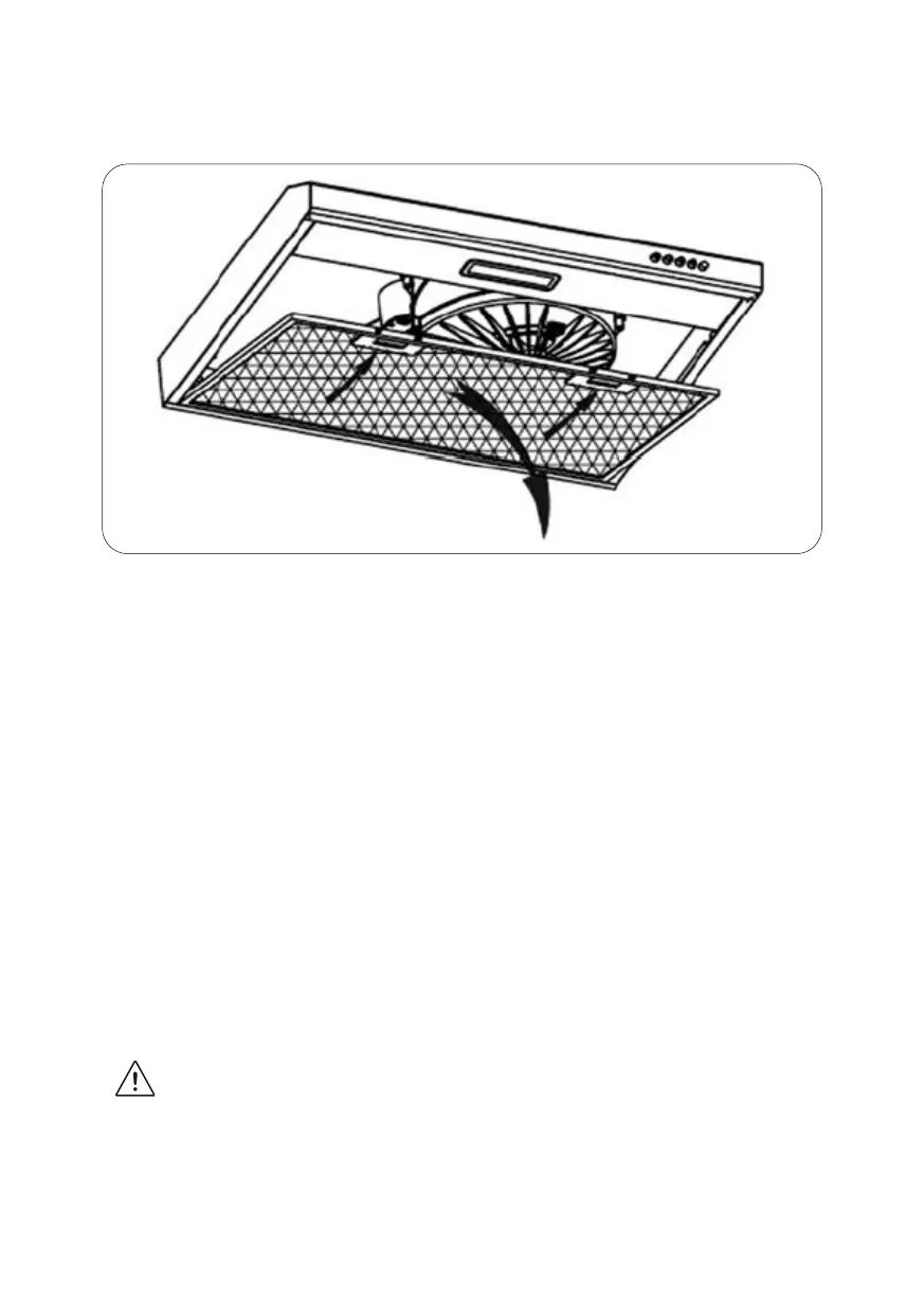 ‒ Вставте фільтр під кутом у проріз на задній панелі витяжки.