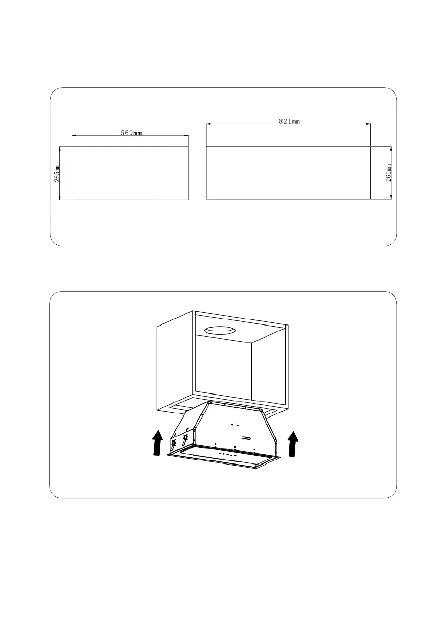 1. Drill a hole in the cupboard, with hole wide 569*265(mm) for model 60CM and hole wide 821*265A(mm)