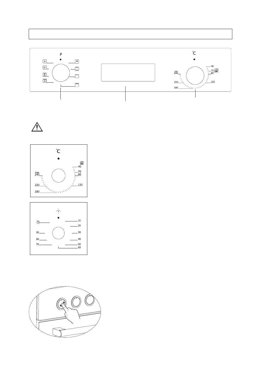 Helps to set time for the food to be cooked in the oven. Timer de-