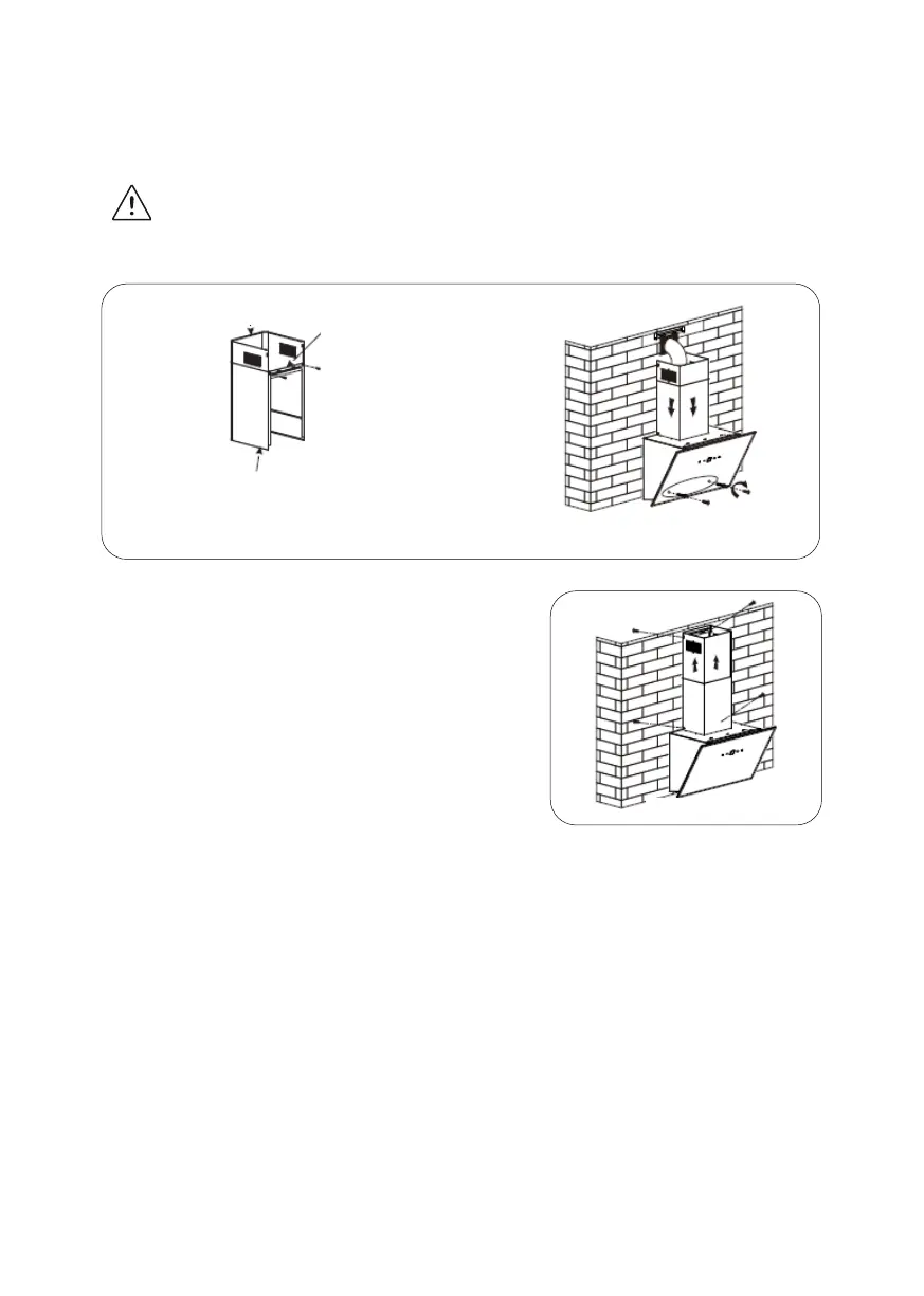 Umieść dwa kominy na okapie kuchennym, zamocuj zewnętrzny komin na ścianie za pomocą 2