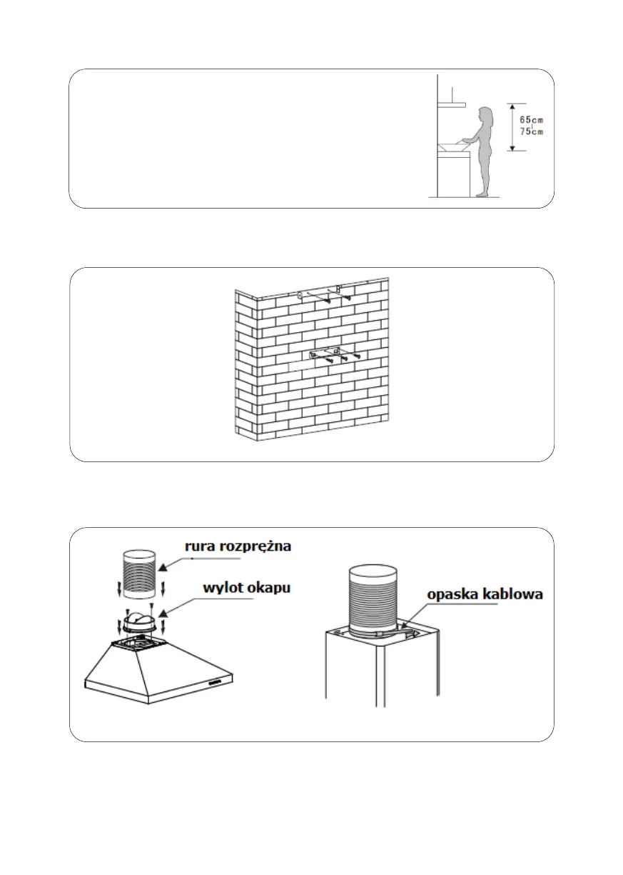 umieszczony w odległości 65~75 cm nad powierzchnią gotowania.
