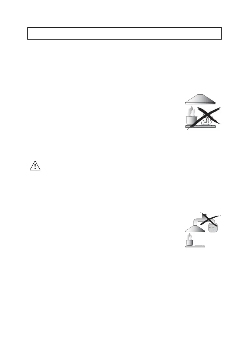 • Never leave naked flames under the cooker hood.