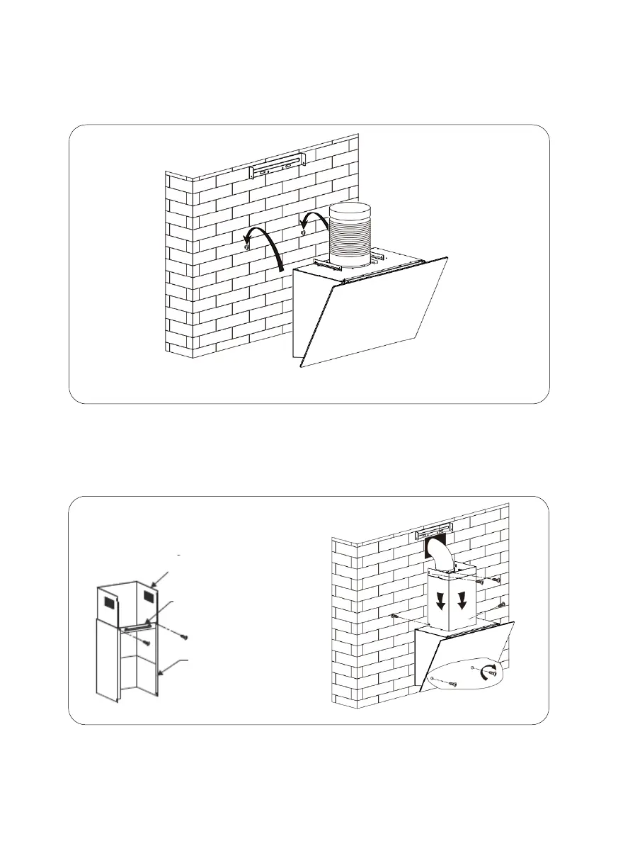 screws fix the outside chimney to the hood body and the use 2pcs ST4*40mm fix it on the wall. Lay the