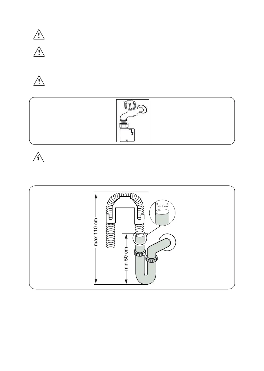 w zlewie. To podłączenie powinno znajdować się co najmniej 50 cm (maks. 110 cm) od podłogi, na której