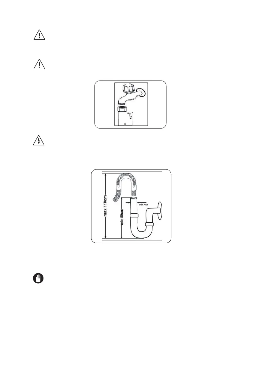 w zlewie. To podłączenie powinno znajdować się co najmniej 50 cm (maks. 110 cm) od podłogi, na której