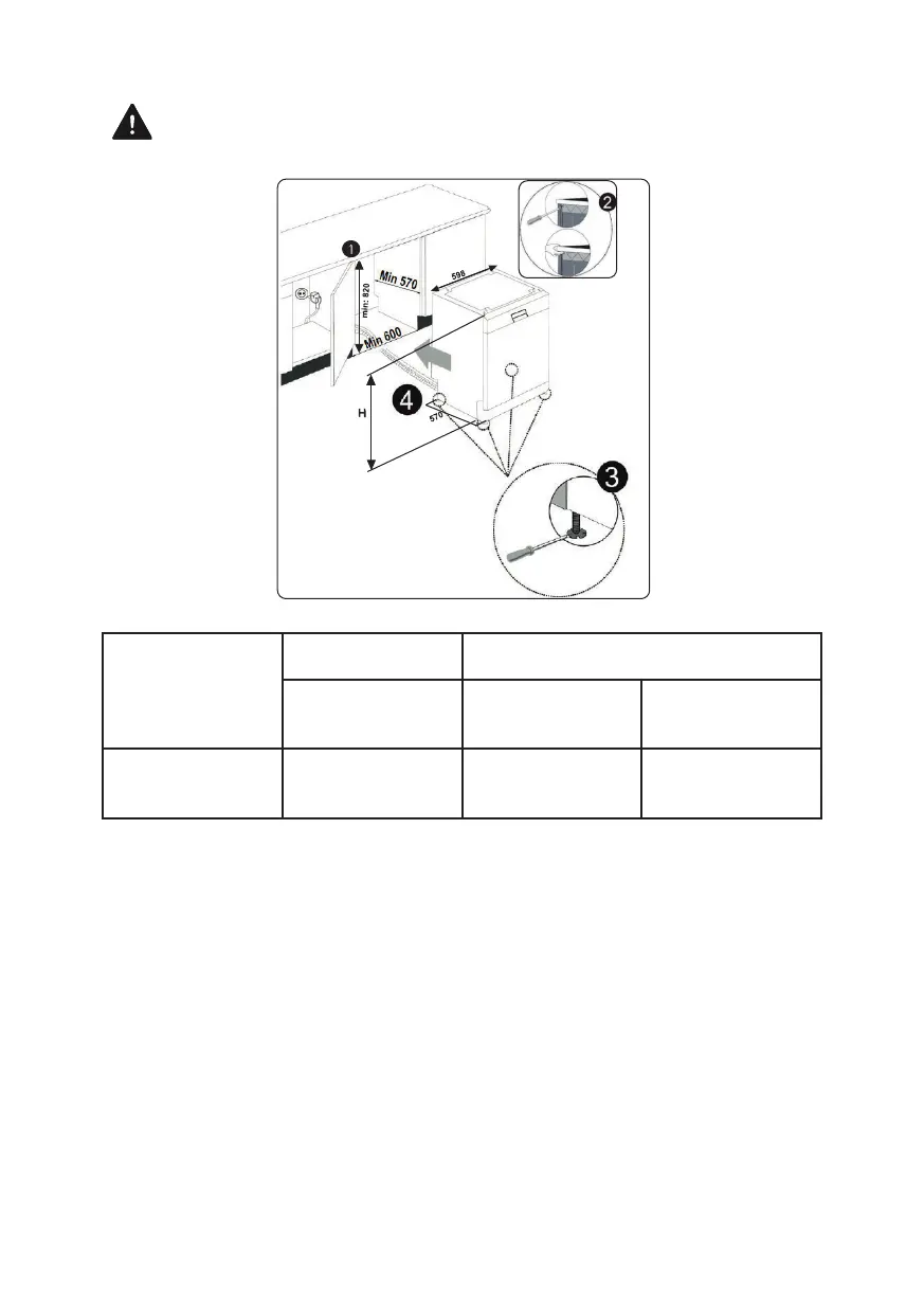 Po zdemontowaniu panelu górnego zmywarkę należy ustawić w miejscuo wymiarach podanych