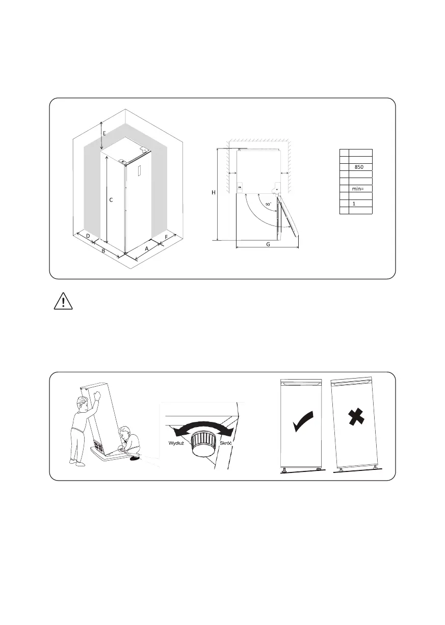 Jeśli urządzenie nie jest wypoziomowane, drzwi i uszczelki magnetyczne nie zostaną prawidłowo zakryte.