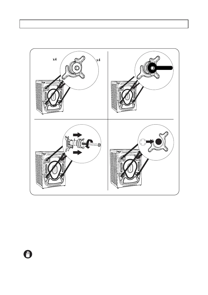 1. Перед початком використання пральної машини зніміть 4 транспортних гвинти й гумові