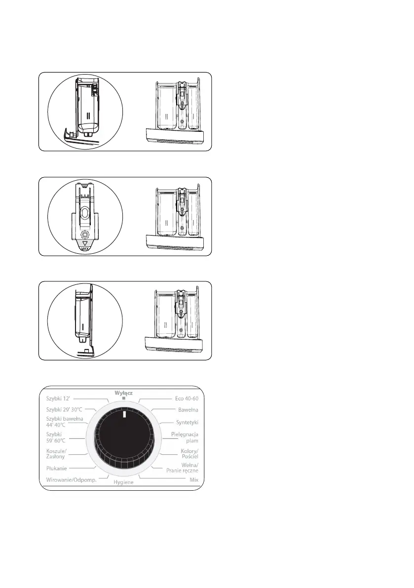 Przegroda na środek do płukania tkanin, krochmal, detergent: