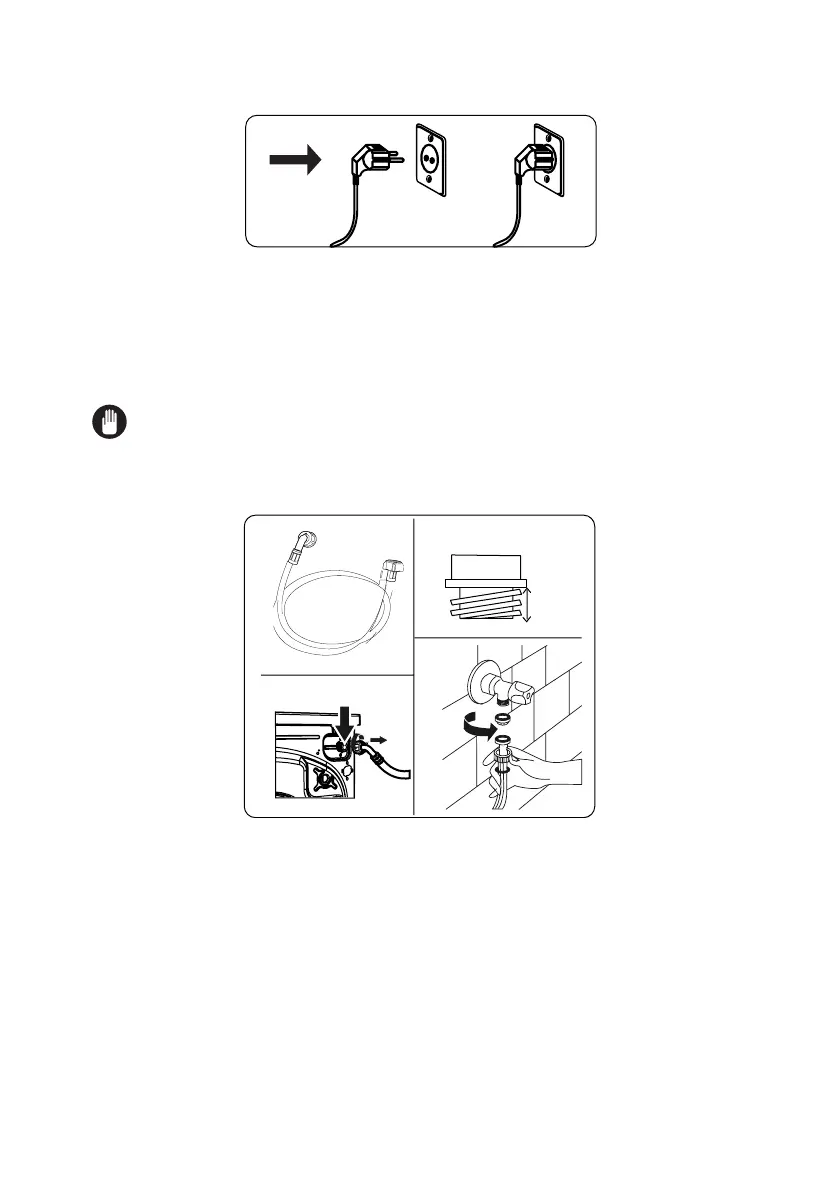 • The mains cord of your washing machine is equipped with an earthed plug. This plug should