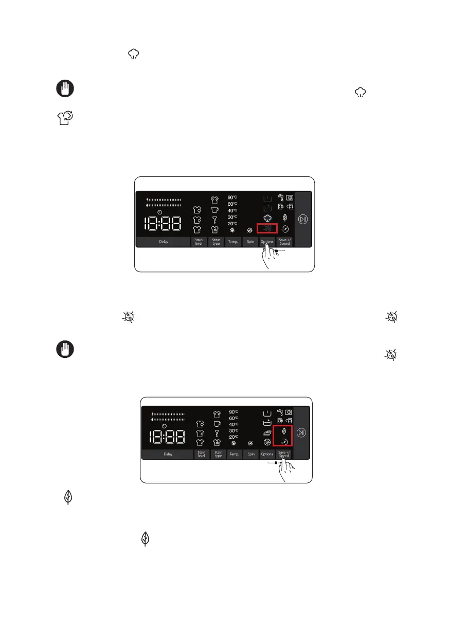 Pokud zvolíte tuto doplňkovou funkci, doba trvání pracího programu se mírně prodlouží. Pro prací cyklus