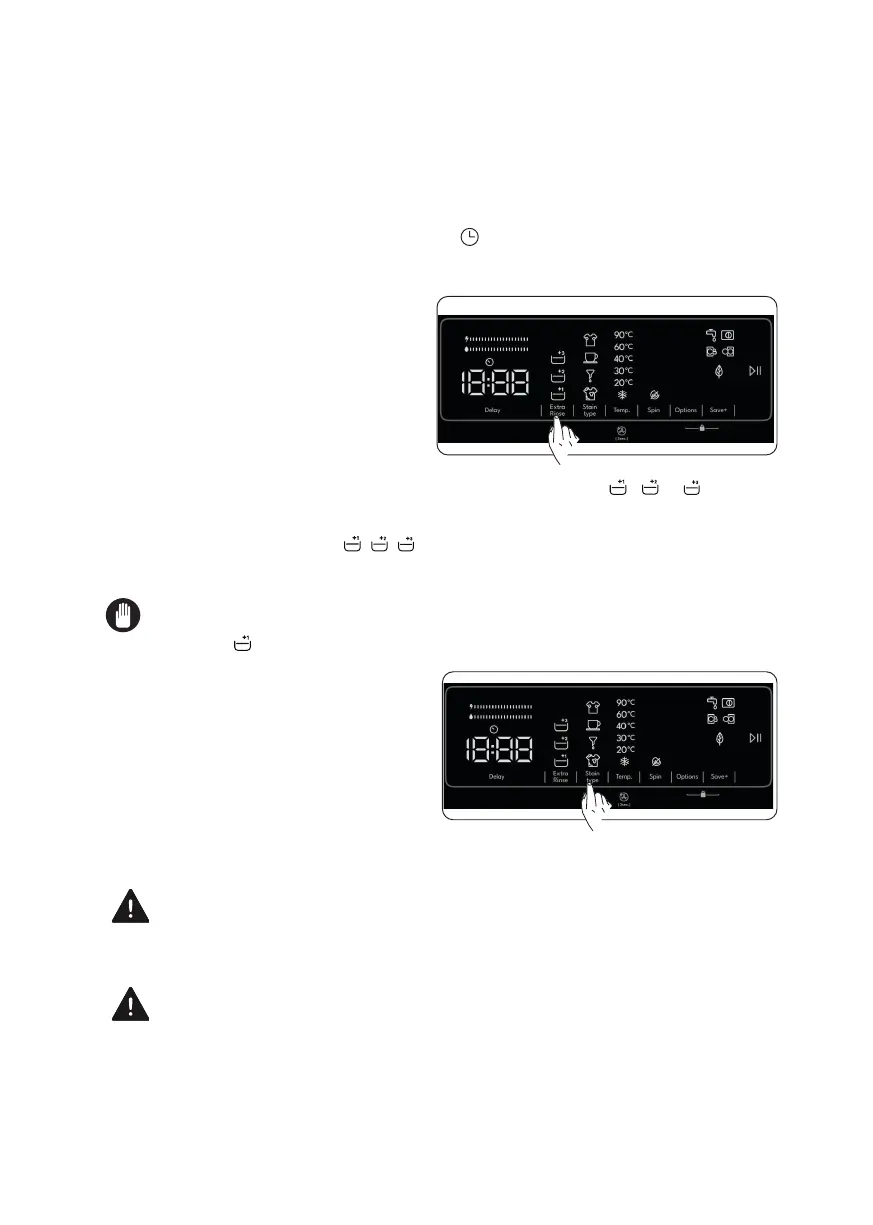 • Під час вибору програми або в процесі прання можна вибрати 1 , 2 i 3 різні рівні