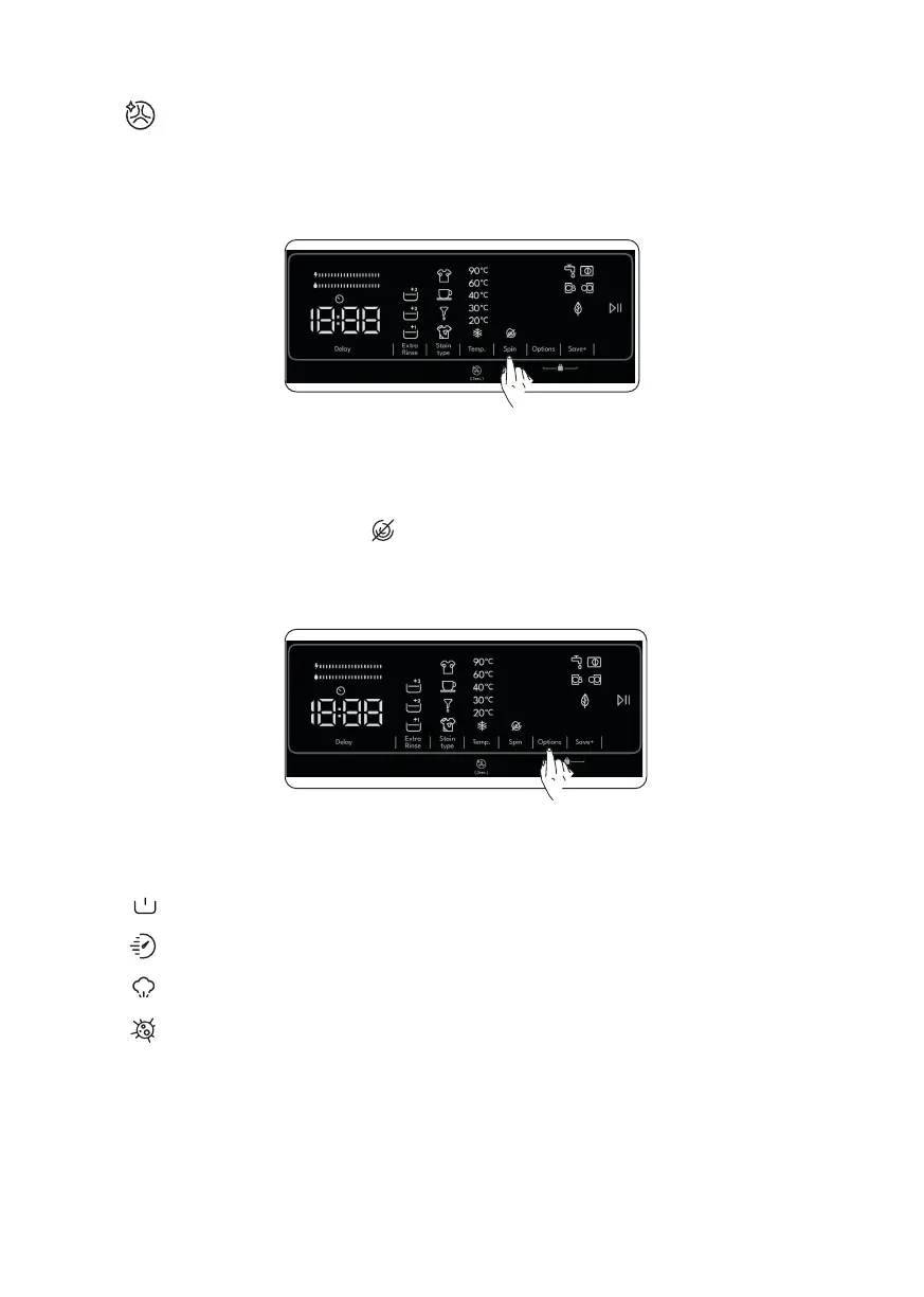 Для цього треба натиснути кнопку додаткових варіантів прання на панелі дисплея з подальшою