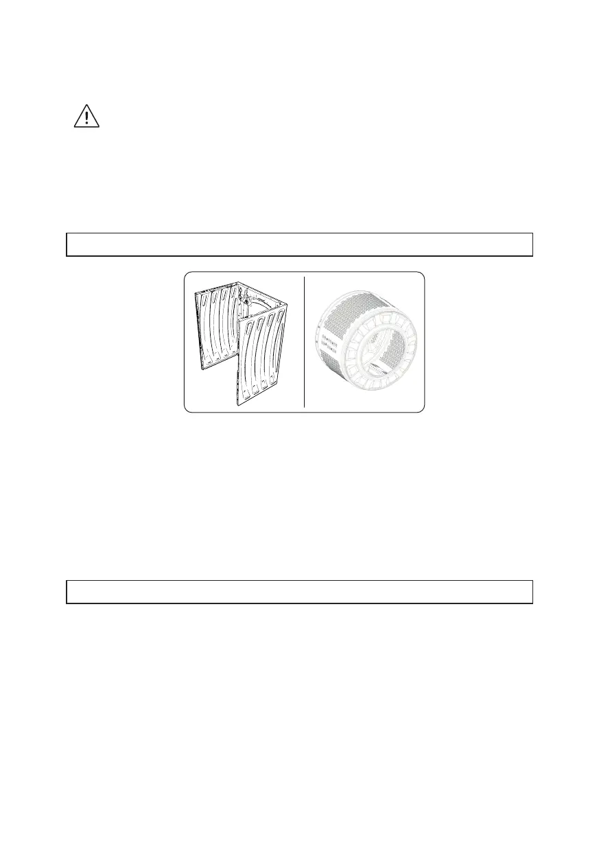 Nie pozostawiać w pralce metalowych przedmiotów, takich jak gwoździe, spinacze do papieru, monety.