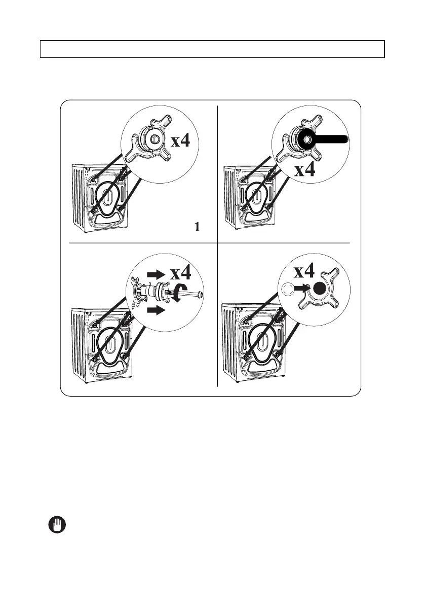 1. Przed użyciem pralki usunąć z niej 4 śruby transportowe i gumowe elementy dystansowe. Jeżeli