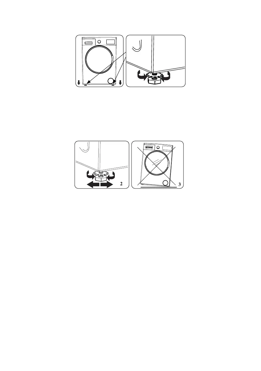 2. Aby zwiększyć wysokość pralki, należy obrócić nóżki zgodnie z ruchem wskazówek zegara.