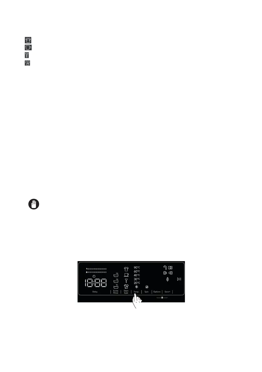 Po wybraniu nowego programu na wyświetlaczu temperatury wody pojawi się maksymalna temperatura