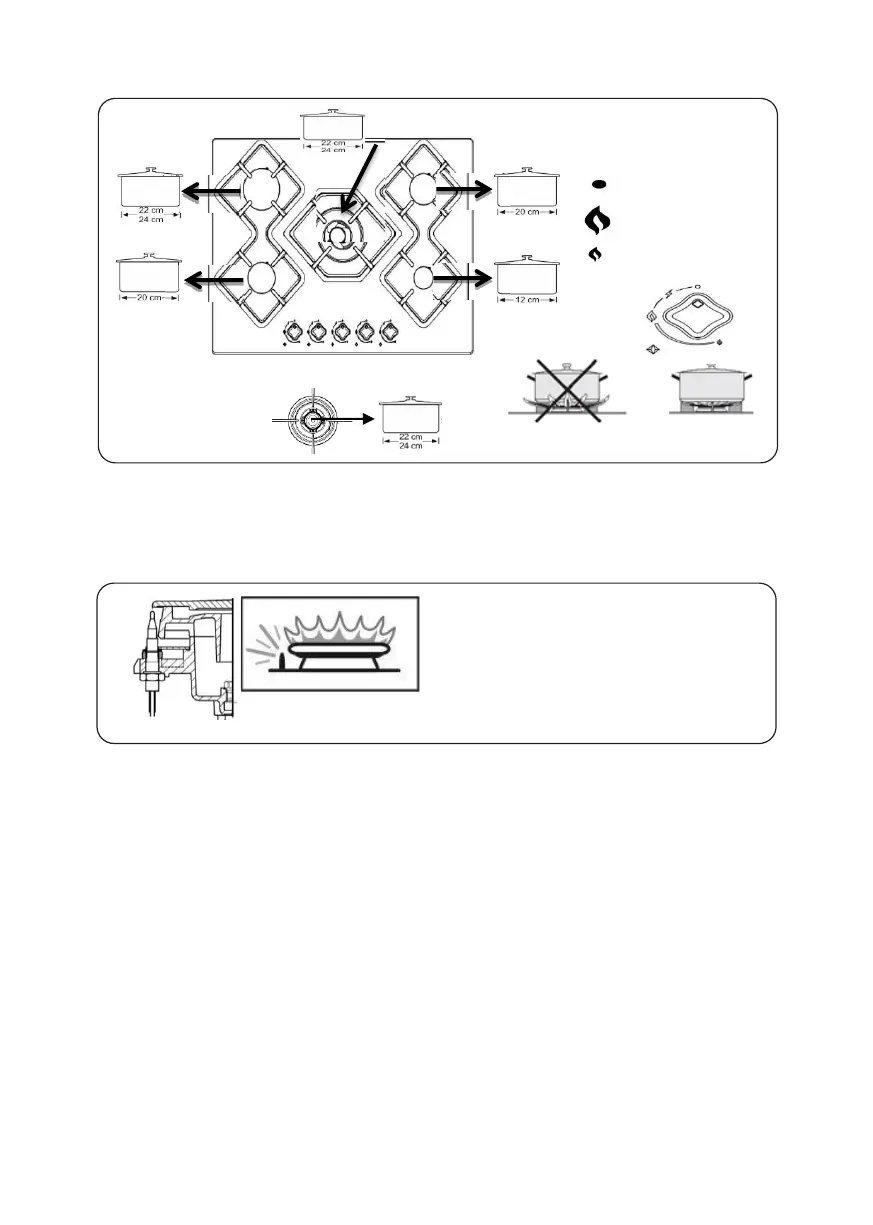 Розмір посуду та полум’я газу повинні бути відрегульовані відповідно.