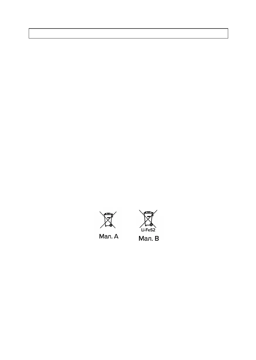 Символ перекресленого контейнера для відходів, розміщений на пристрої (Мал. А) означає, що