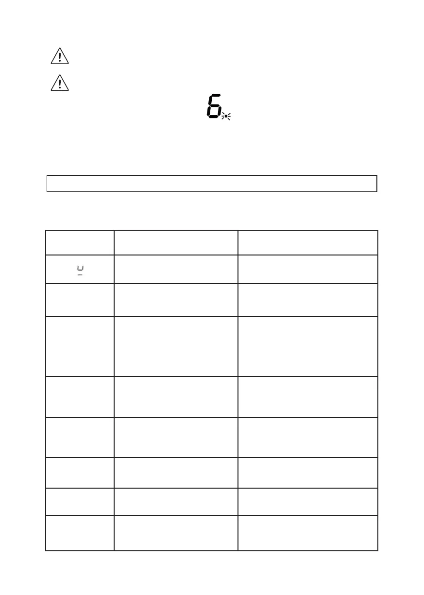 If an abnormality comes up, the induction hob will enter the protective state automatically and display