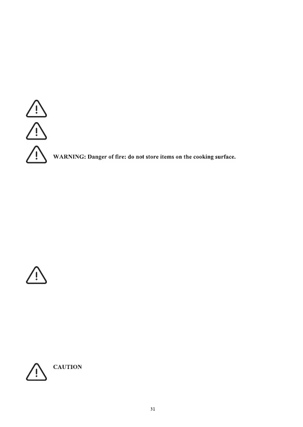 • Sugar, synthetic materials or aluminium sheets must not contact with the heating zones. These may cause