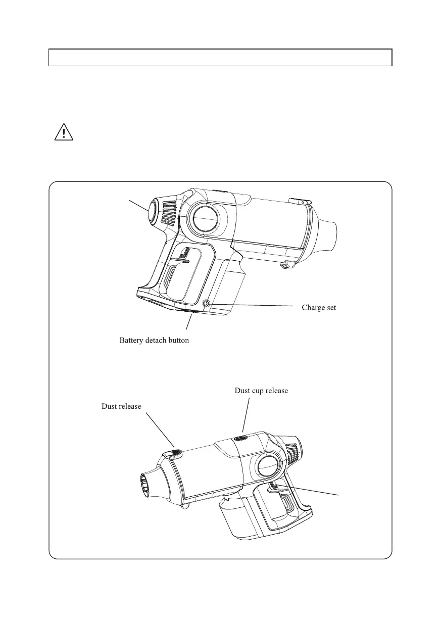 Insert the battery pack into main body as picture shows. You will hear a click sound when fitted.