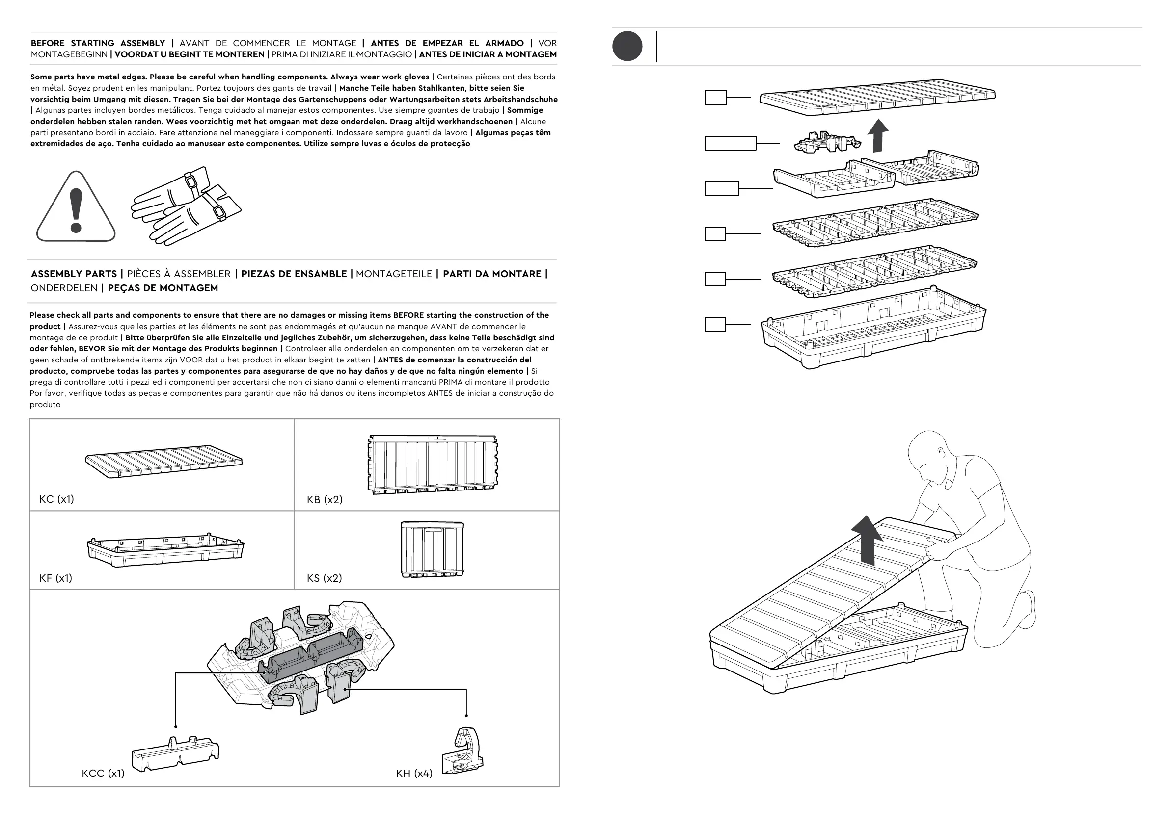 vorsichtig beim Umgang mit diesen. Tragen Sie bei der Montage des Gartenschuppens oder Wartungsarbeiten stets Arbeitshandschuhe