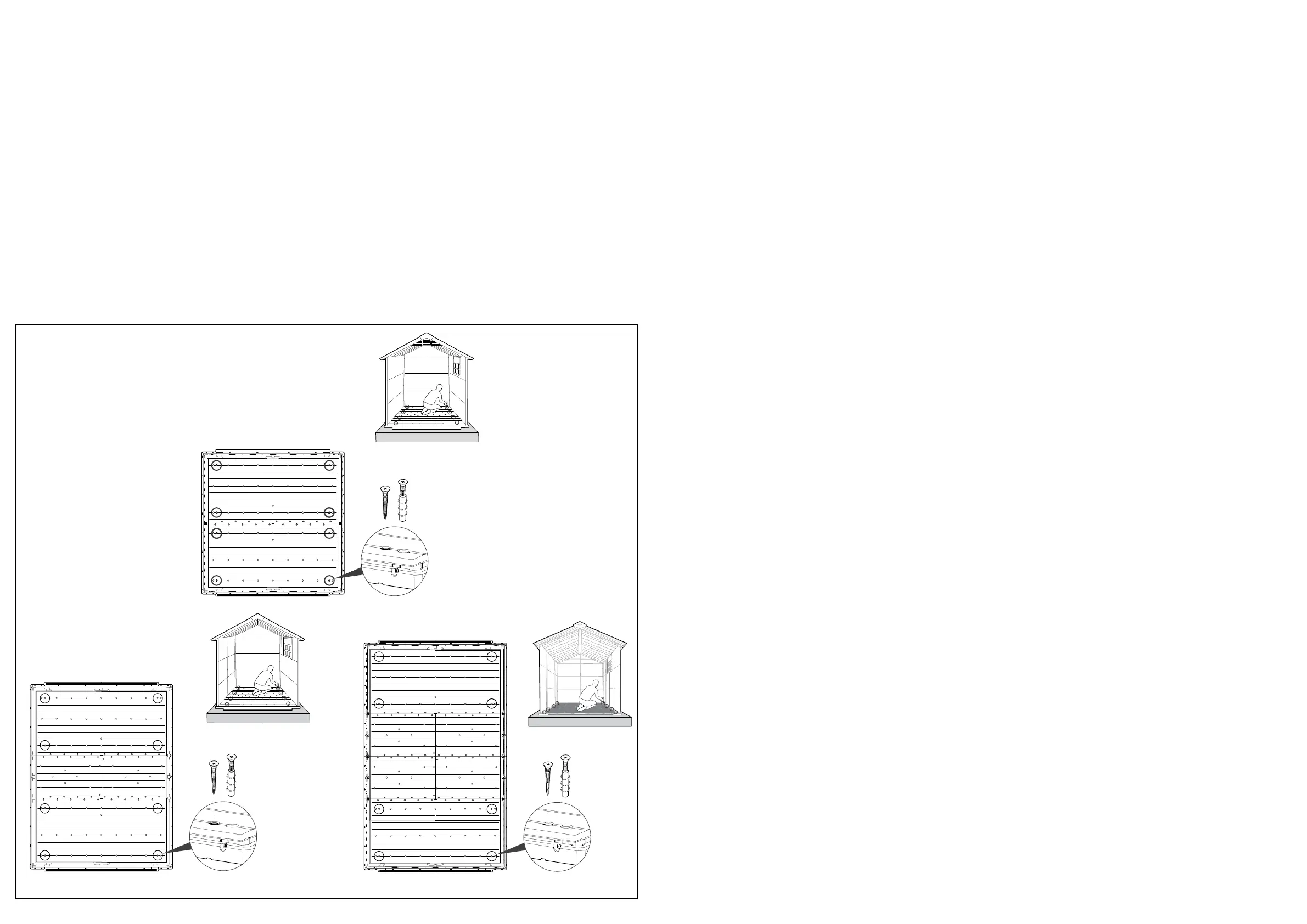 ustreznih vijakov (vijaki niso priloženi). • Ne montirajte hiške kadar piha veter ali je hladno. • Občasno preverite stabilnost hiške ter nivo podlage, na kateri je hiška