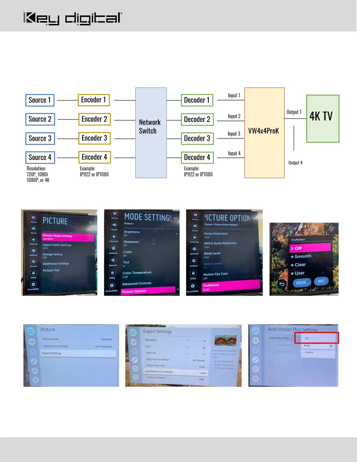 If AV over IP decoders feed into KD-VW4x4ProK’s HDMI inputs as pictured in the below diagram image jitter
