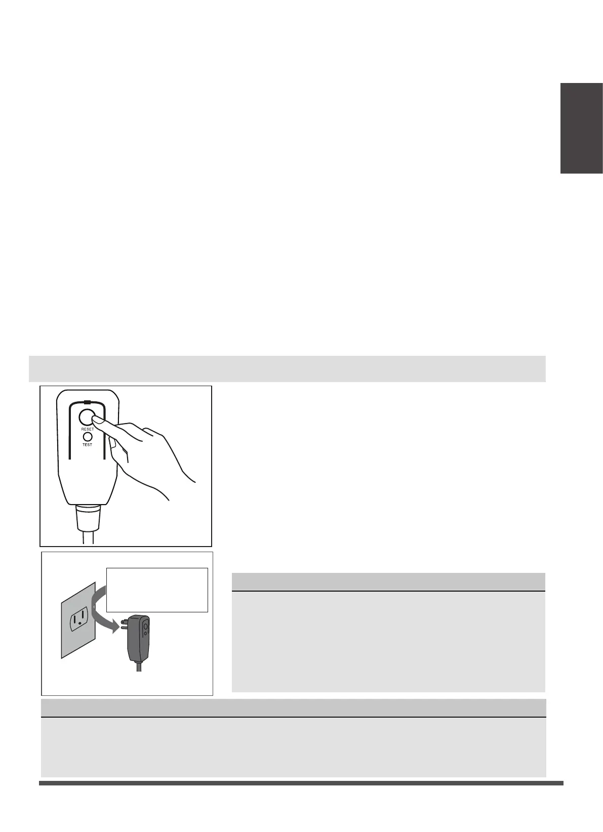 • The power supply cord must be replaced if it fails to reset when either the TEST button is