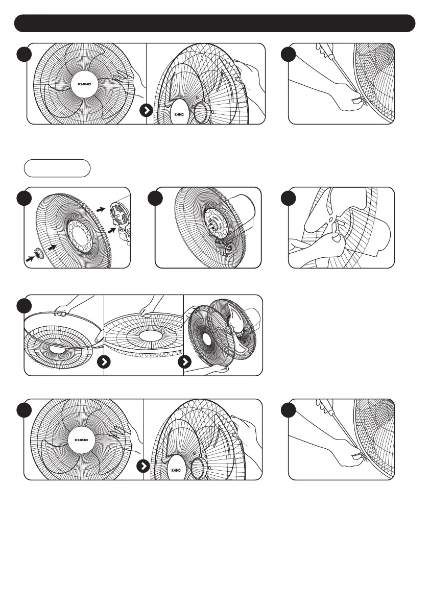 Tighten the rear fan guard lock Screw the fan blade. Tighten the