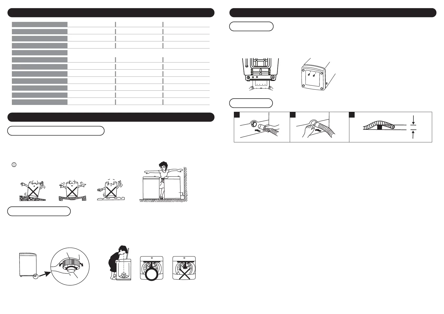 1. 请不要将包装底座(塑料支架)放在洗衣机下面,因为它会产生噪音并损坏洗衣机。