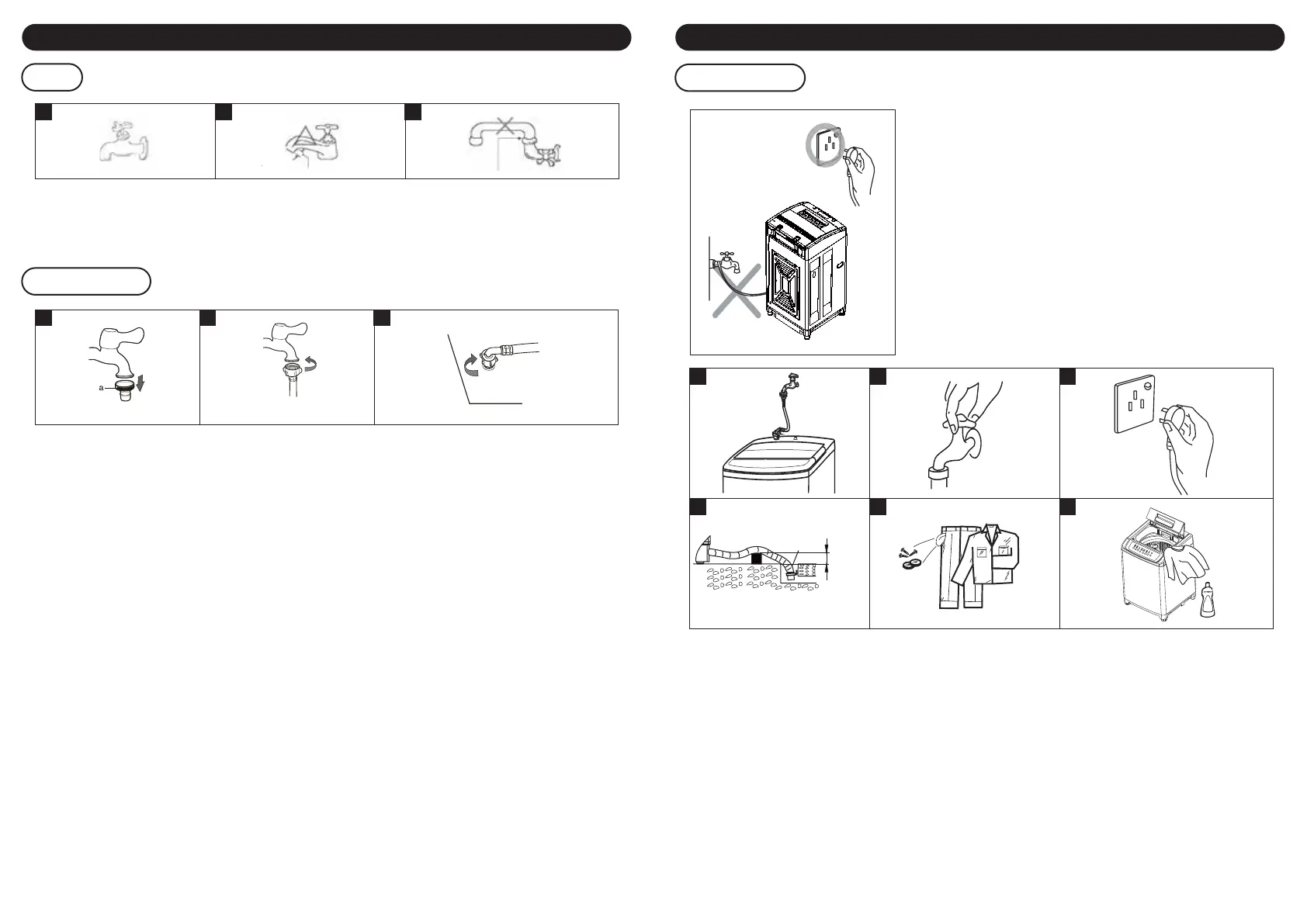 • 打开水龙头,检查是否有漏水。少量水可能会进入洗衣机。稍后您会耗尽。